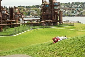 Bicycle ride from Husky stadium to Golden Gardens and back with Katy and her friend.