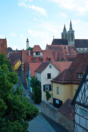 We rented motorcycle in Frankfurt and started our journey on road of castles: Burgenstrasse. Pretty city of Rothenburg