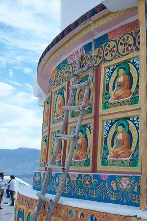 Day of rest in Leh: visiting Shanti Stupa (https://en.wikipedia.org/wiki/Shanti_Stupa ), it is silly but note ladders on the photographs, all of them are of very questionable reliability, looks like that is feature of this region ;)