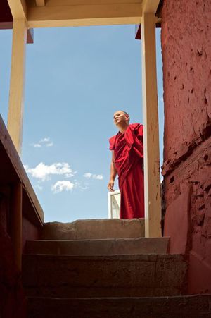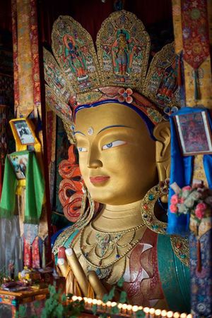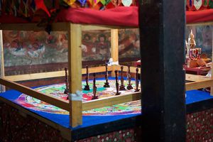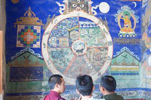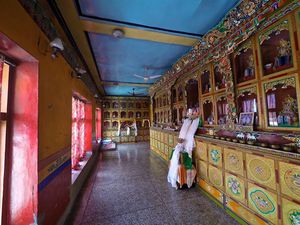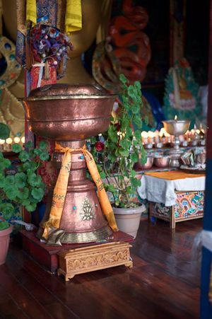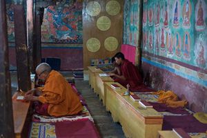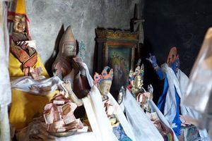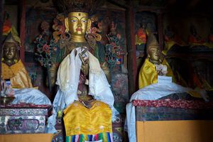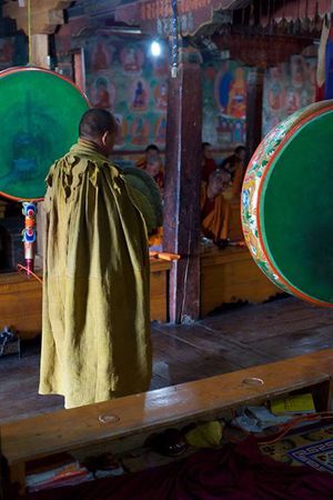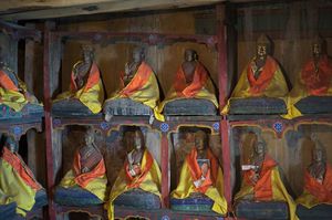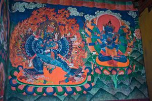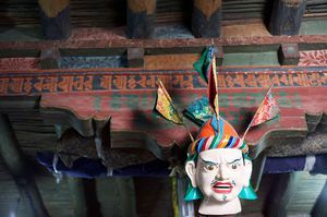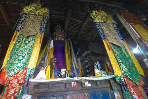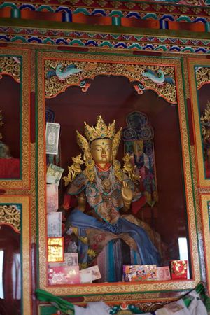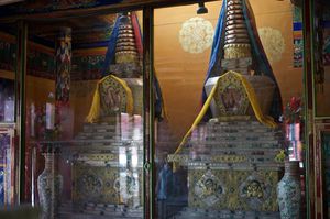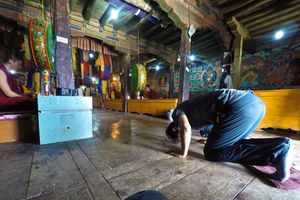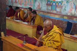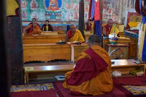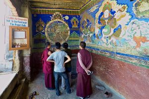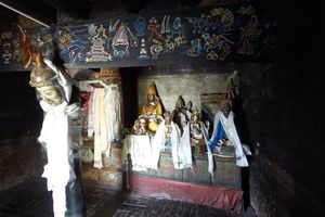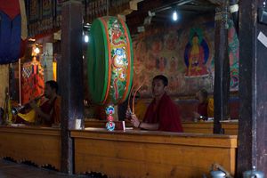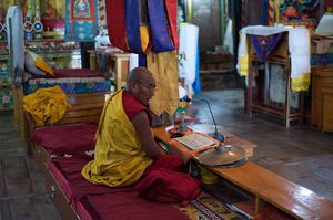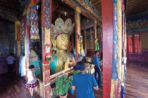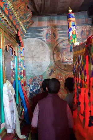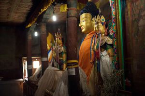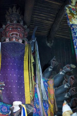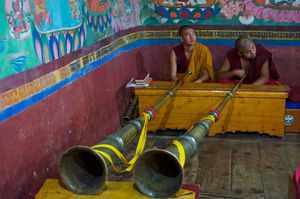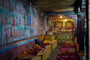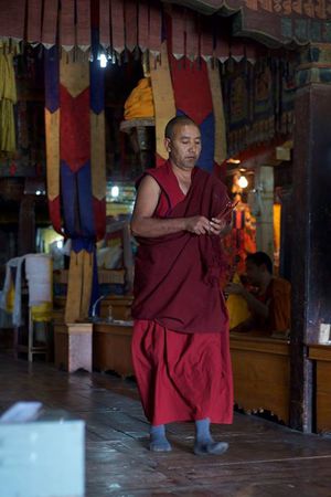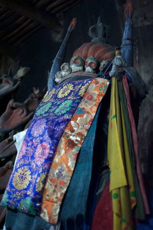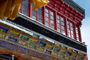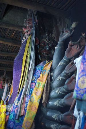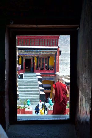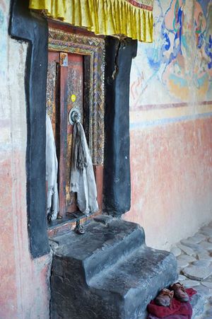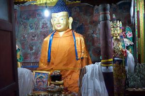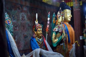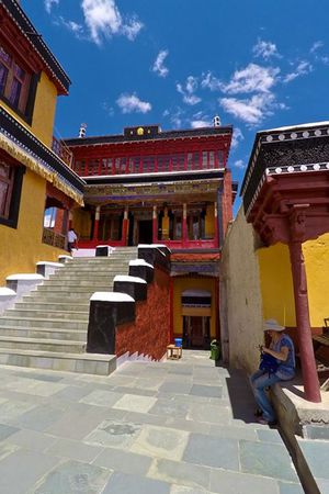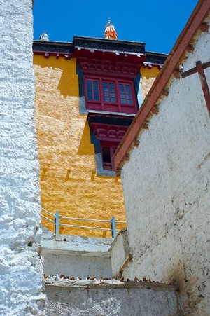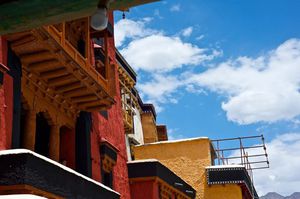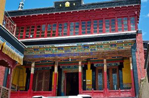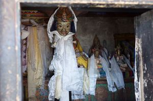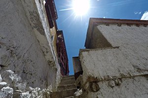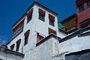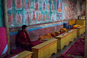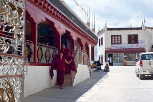 Lazy day in Leh: we are on our own now and started day by visiting Thikse Gompa. This monastery resembles famous Potala Palace in Lhasa. I seated there through long ceremony celebrating day of full moon ( https://youtu.be/NJJXVUcepBs ) and then we explored the monastery visiting numerous temples and its library. Those books are huge! And idols are fearsome. When we were leaving monastery we have notice that certain part of male anathomy protruding through its wall.