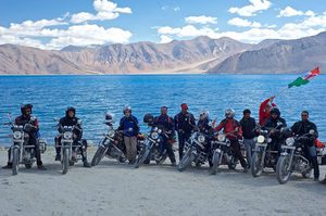 Morning at Pangong Lake, it is a last day we are riding with the group. Next day we will stay in Leh to explore its rich buddhists traditions and others will start their journey back to Delhi.
