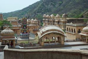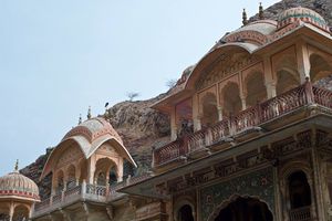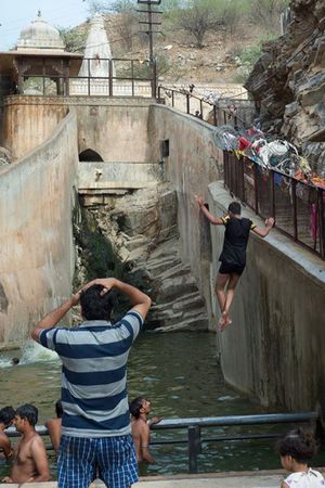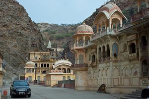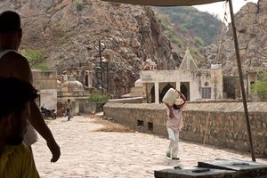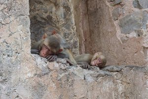 Being in Jaipur we could not pass opportunity to visit Galtaji Temple, commonly known as 'Monkey Temple' - I was watching many episodes 'Monkey Thieves' documentary with our youngest daughter before this trip and now have opportunity to visit the place and see the monkey gang with own eyes. (https://en.wikipedia.org/wiki/Monkey_Thieves)