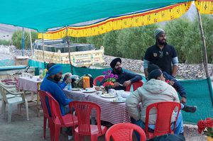 Stopped by dhaba for breakfast and met those Sikh bikers. Look at their colorful and elaborate 'helmets' ;)