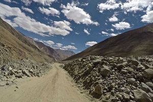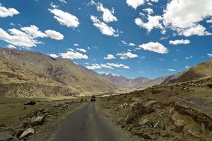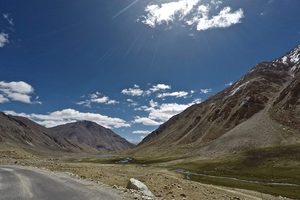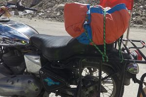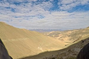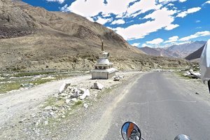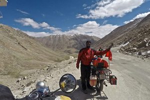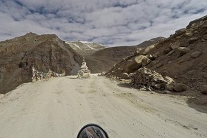 Leh to Pangong lake: we are climbing high again to ChangLa, road is getting worse as we climb, and it destroyed rear suspension of Veeru's bike. Luckily we have a chase vehicle with mechanic and spare parts!