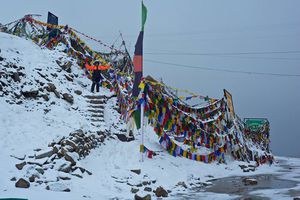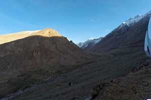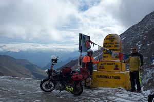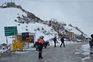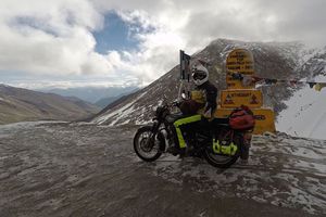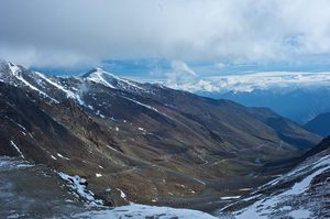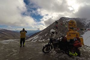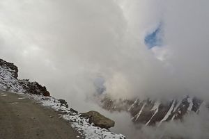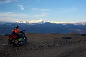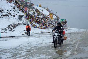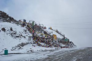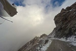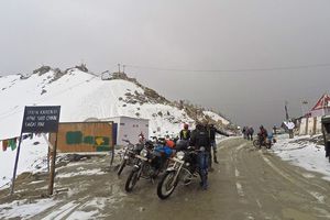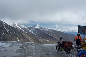 Photos of overnight excursion to Nubra valley: it was snowing on KhardungLa the night before. We started early from Leh so we were riding on snow through heavy fog approaching KhardungLa that claims to be the highest motorable pass in the world at 5602 m (18380 ft).