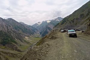 It was cold and rainy road to Srinagar. A lot of military convoys clogging the road and many war memorials alongside the road.