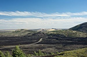 On the way there I stopped by "Craters Of The Moon" NP - incredible landscape, vast lava fields, barren land, and really strong winds, so strong they toppled my bike.